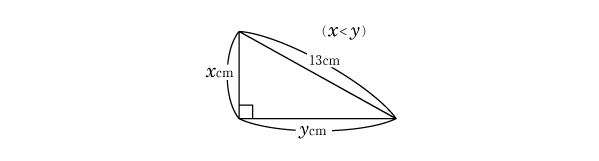 あとはこれらを満たすxとyの値を、これまた新たに学ぶ「2次方程式」を解く手順に従って、x=5、y=12と求めることができます。