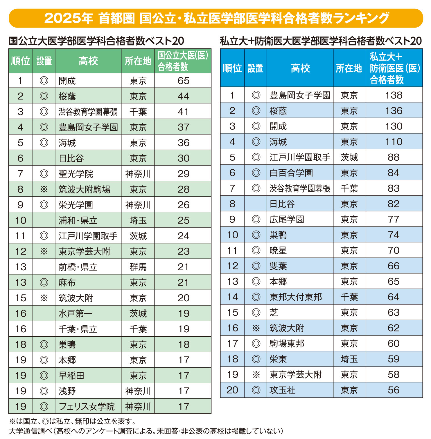 安定の医学部人気の女子校と興進学校の台頭